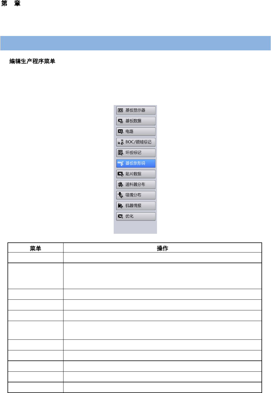 在[编辑生产程序]菜单中,可对下载的生产程序,机器中保存的生产程序,新生产程序进行编辑和优化。