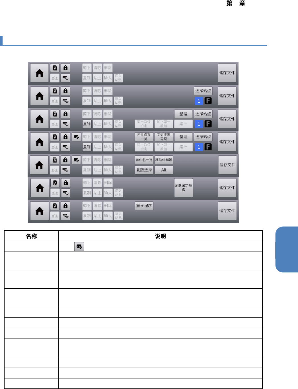 在[编辑生产程序]菜单中,可对下载的生产程序,机器中保存的生产程序,新生产程序进行编辑和优化。