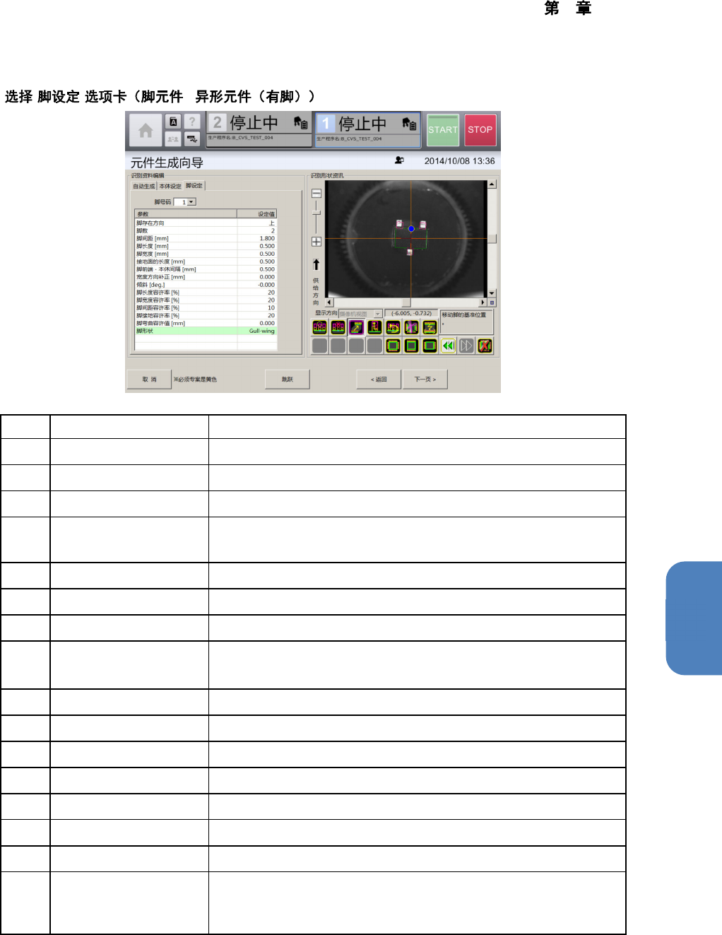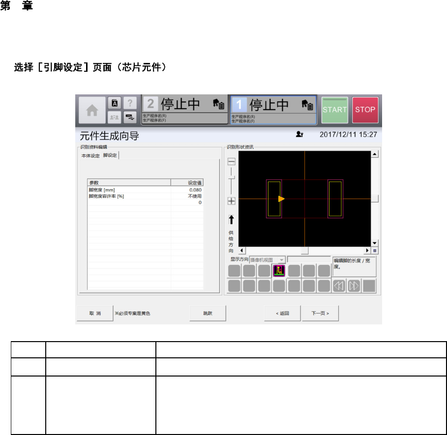 4 操作篇 4-13 元件生成向导 280 n 记号 名称 说明 (a) 脚宽度 (mm) 输入芯片元件的引脚宽度。 (b) 脚宽度容许率 (%) 选择使用 / 不使用芯片元件引脚宽度 的识别容许率。 • 使用 • 不使用 选择[使用]时,输入对脚宽度的识别 容许率 (%) 。 芯片元件脚宽度的设定 通常不需要变更。 发生识别错误时,请根 据元件的实际尺寸输入脚宽 度。