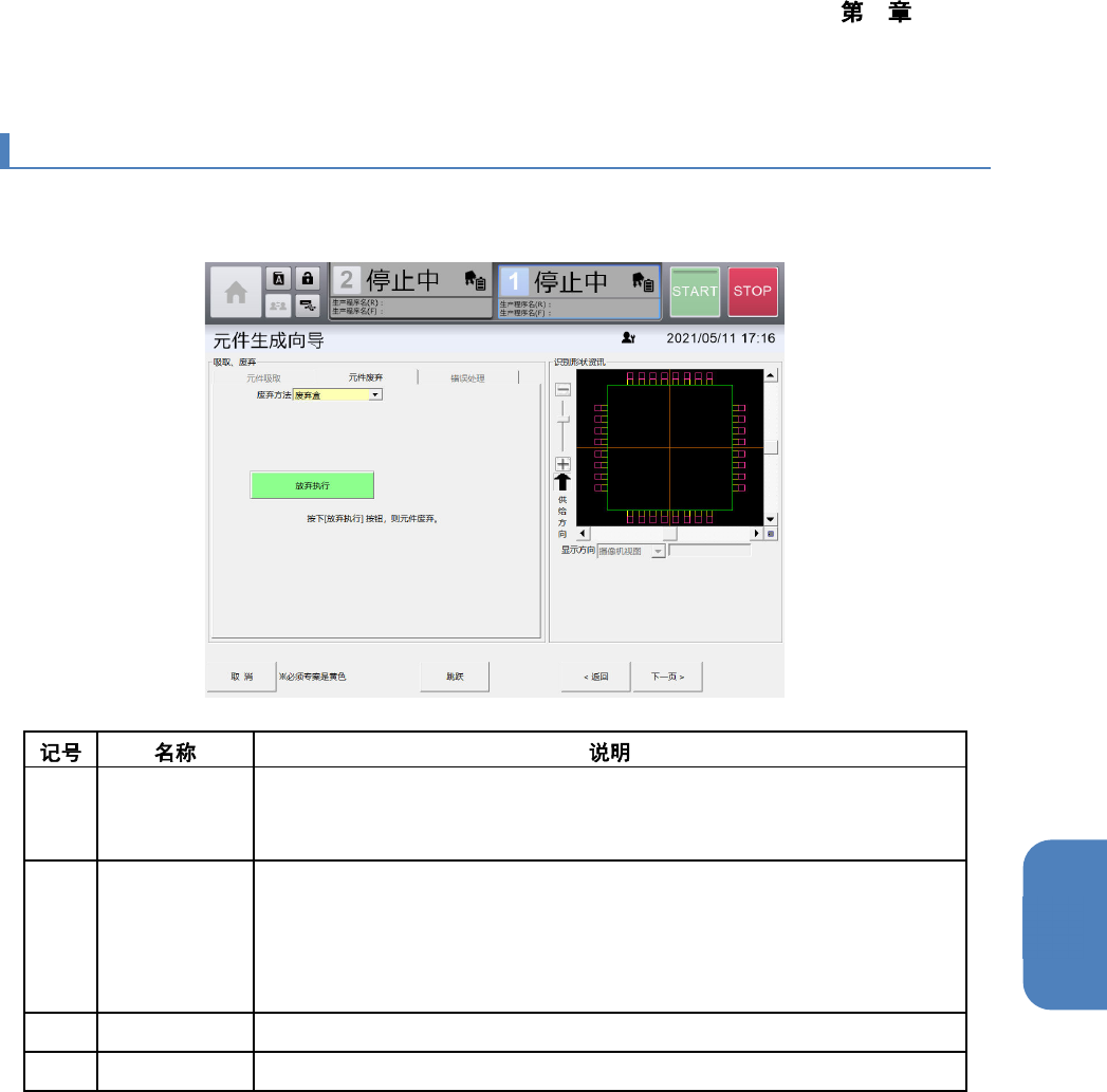 换台车会下降,门的锁定将解除。手动从吸嘴取下元件后,触摸[废弃完成]