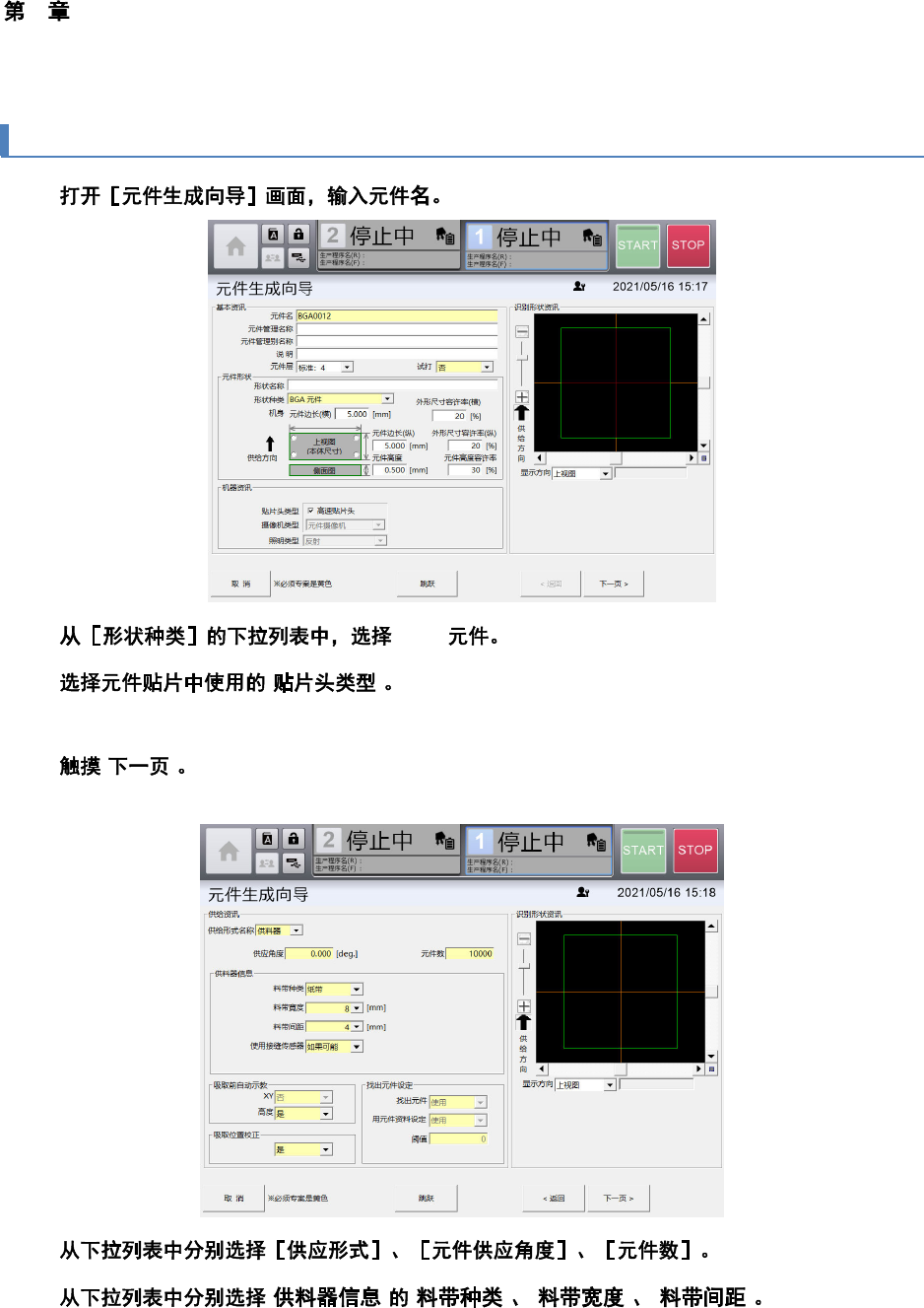 [自动生成]选项卡,可在[吸取、废弃]画面中吸取元件时,自动从摄像机图像制作 BGA 元件的识别数