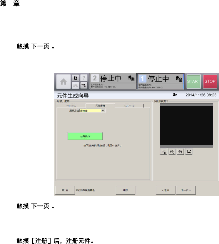 在贴片头吸取元件时,会显示[吸取、废弃]画面。