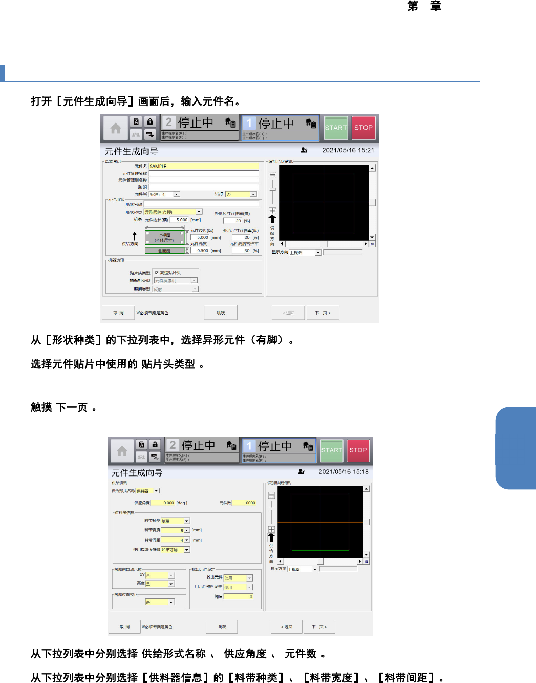 [自动生成]选项卡,可在[吸取、废弃]画面中吸取元件时,自动从摄像机图像制作脚元件的识别数据。