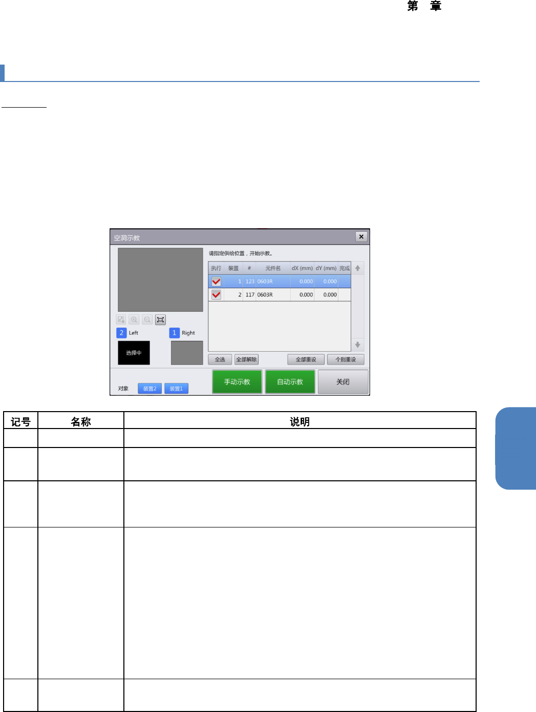 4 操作篇 4-15 示教 346 (f) 全部重设/个别 重设 针对 [ 供给位置选择列表 ] 中显示的供给 部,触摸 [ 全部重设 ] 后可 显示所有供给 部的空洞示教 结果。 触摸 [ 个别重设 ] ,将重置选中行的空洞 示教结果,复选框显示 为空栏。 (g) 对象 从 [ 装置 2] 、 [ 装置 1] 中选择操作对象装置。 (h) 手动示教 显示 [ 手动空洞示教 ] 对话框,对 [ 供给位置选择列表 ] 中选中的供给部手动 …
