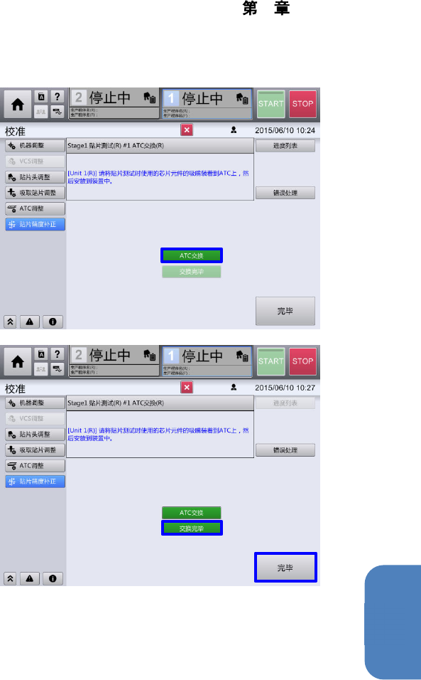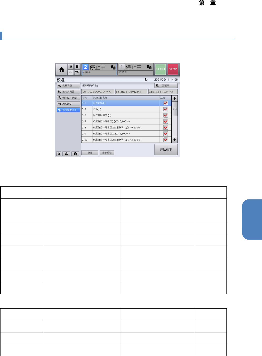 触摸[校准]画面左侧的子菜单面板中的[贴片精度补正],显示[贴片精度补正]画面。