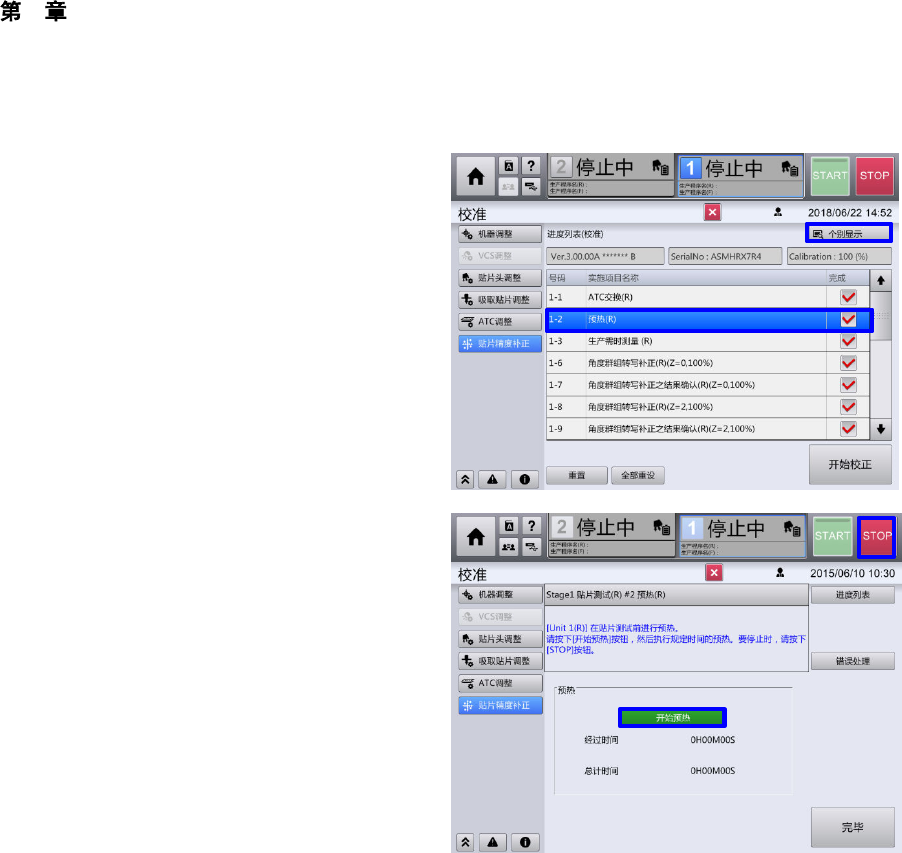 实施后规定时间预热,按『STOP』按钮空