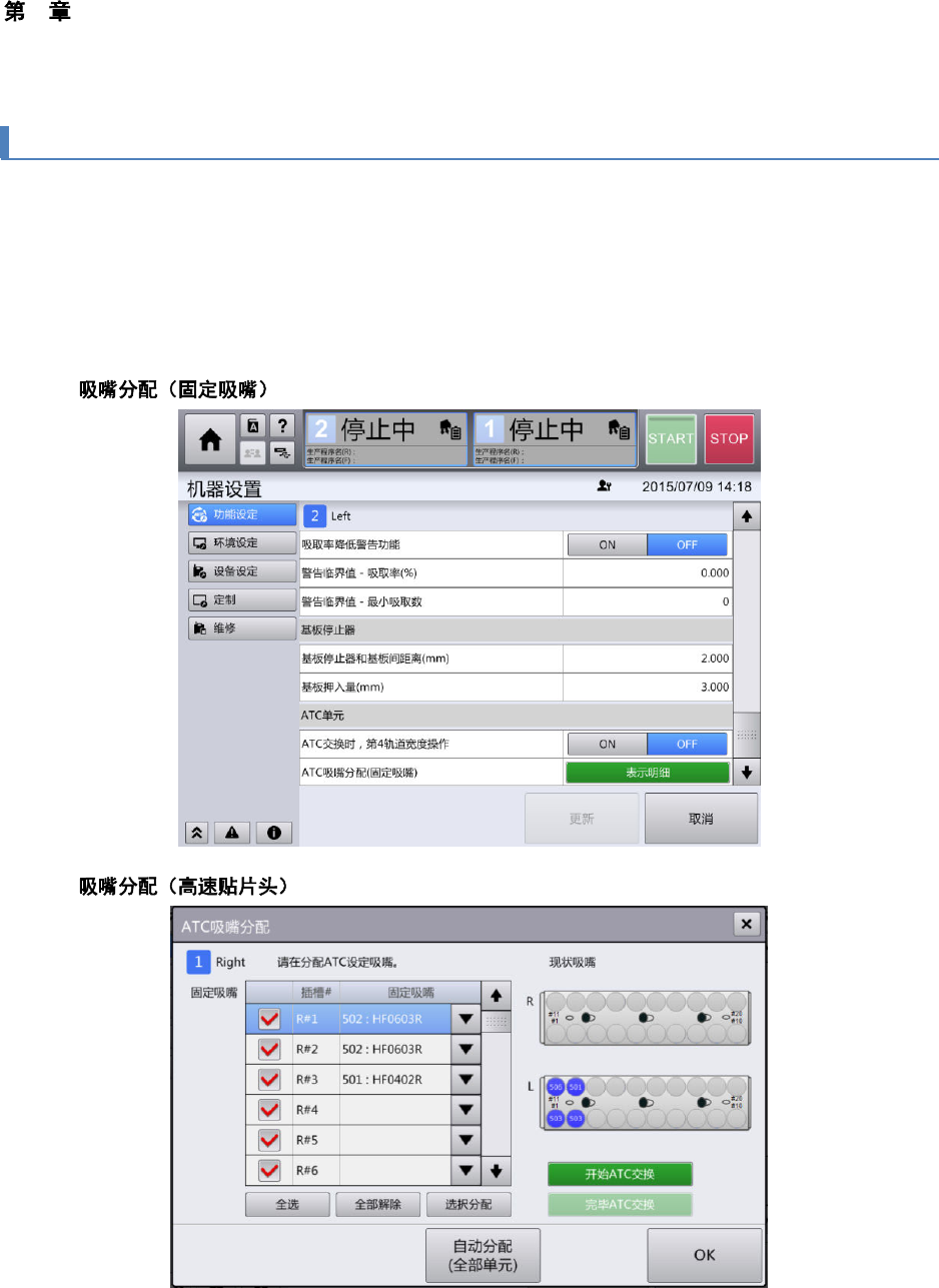 对装置上的 ATC 单元配置吸嘴分配,可在 [机器设置] – [功能设定] 画面中触摸 ATC 单元的 ATC 吸嘴分配