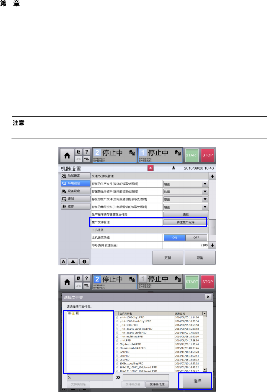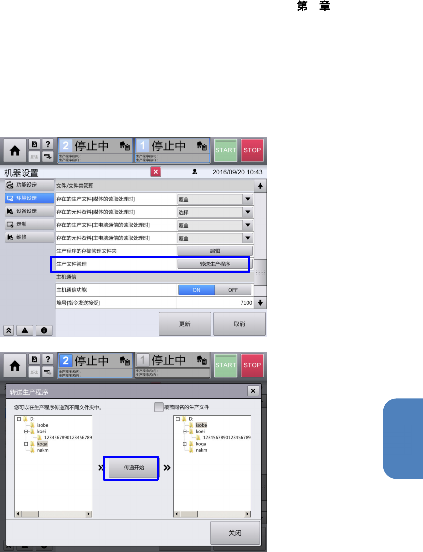 转送到哪个文件夹,再触摸[传递开始] 按钮,于是生产程序被转送。