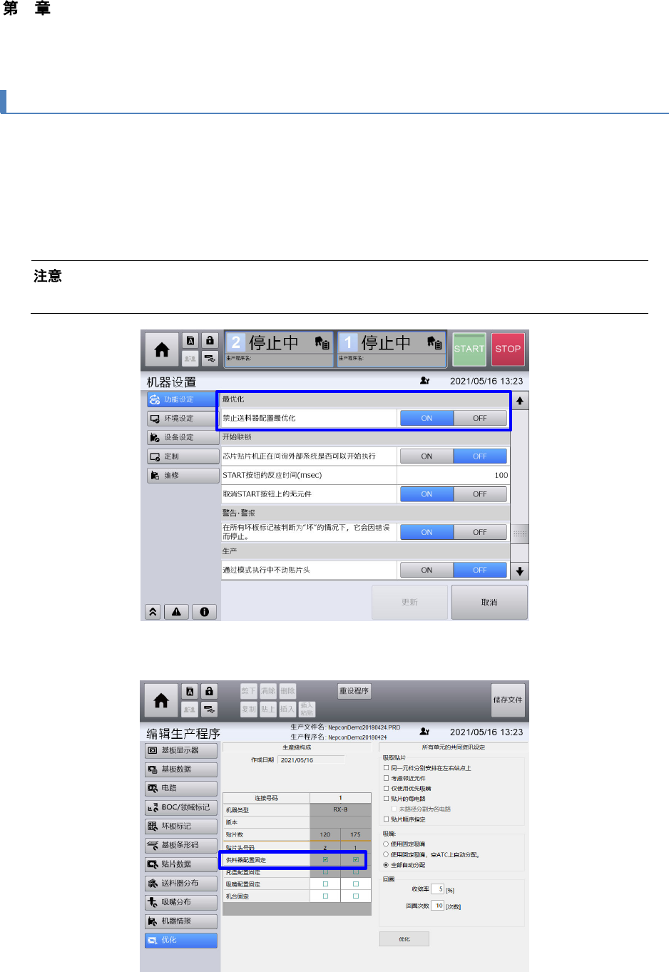 可以禁止在装置优化生产程序时送料器配置发生变动。