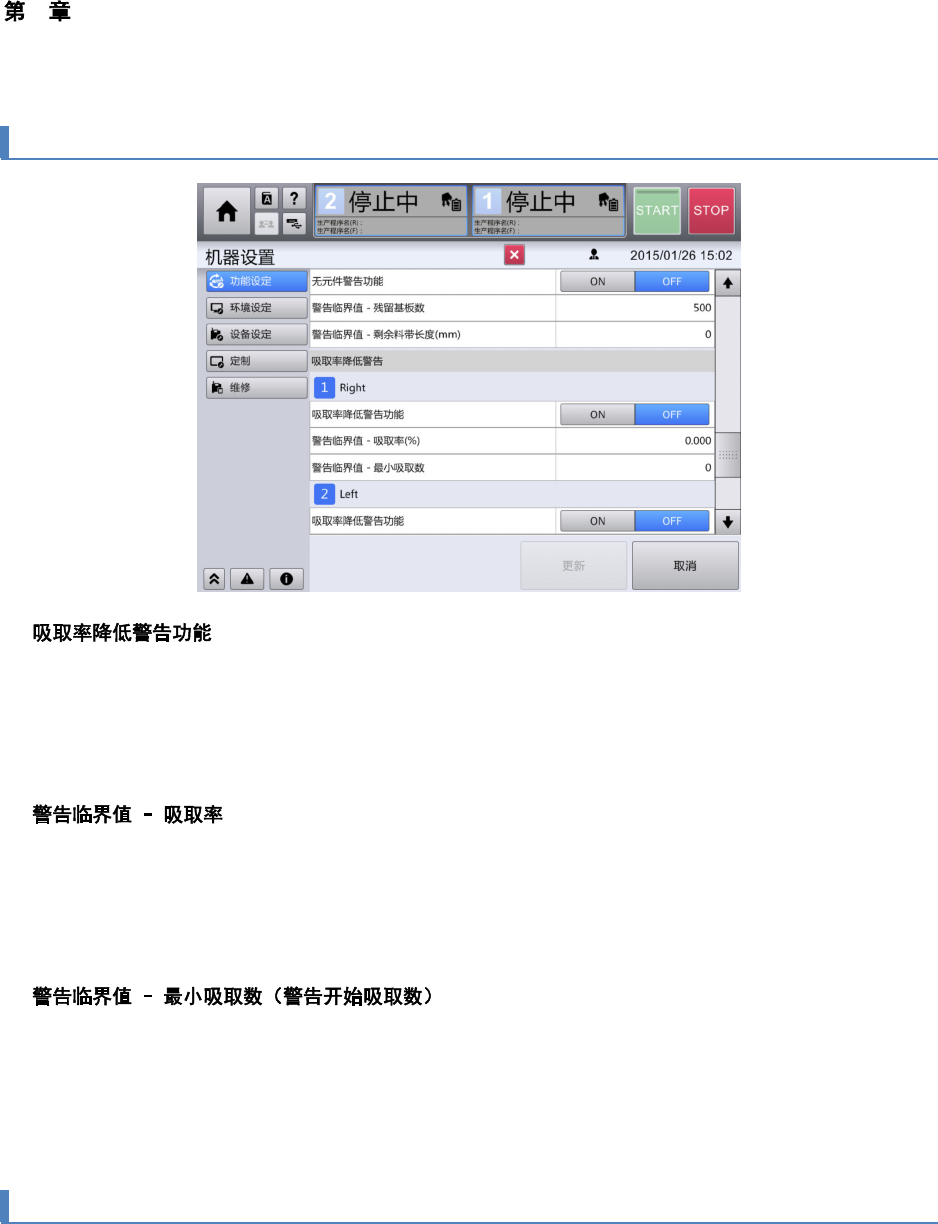 应。为了避免该情况,要设定警告开始的吸取数,仅当超过该吸取数后,才会进行吸取率下降的警告。