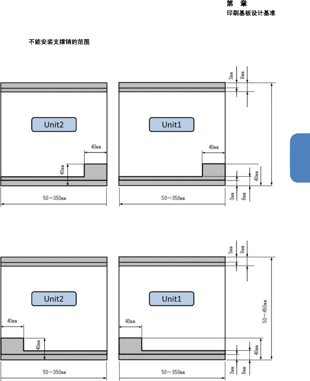 如下图所示,从印刷基板两端向内