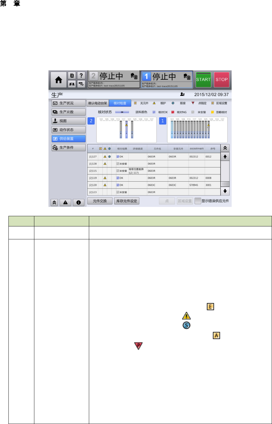 (6) 生产中供料器状态的确认,要在[顶部菜单] – [生产] – [供给装置] 画面中进行。[供给装置] 画面可通过