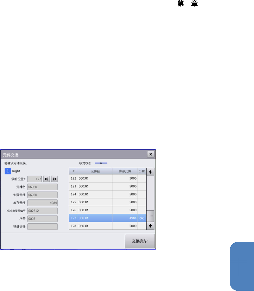 [元件交换] 对话框,将显示装入元件或供应商零件编号等从 IFS 服务器取得的供料器的核对信息,在
