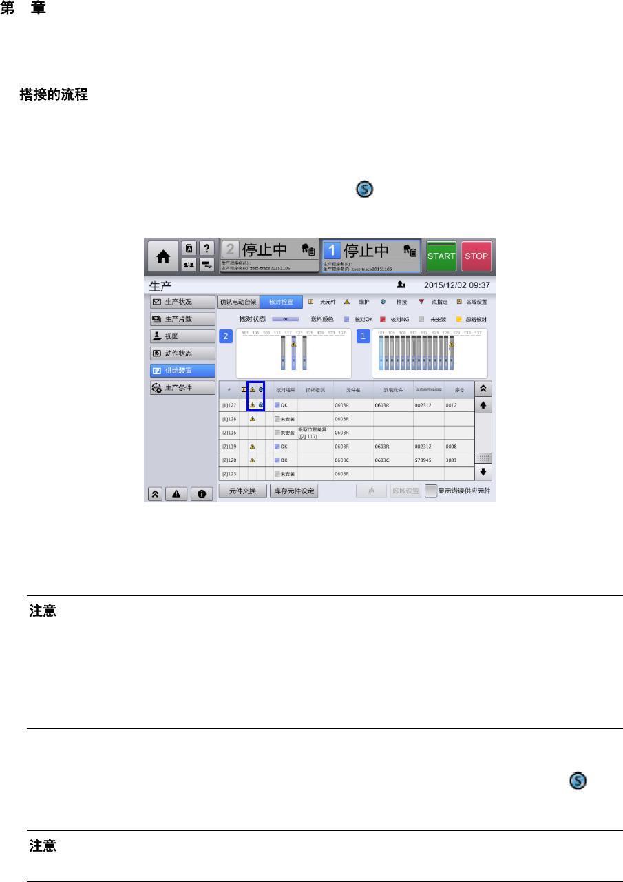 (6) 将已更换完元件的供料器安装到装置上。如果有未进行正确核对的供料器,[CHK]中会显示 NG。进行