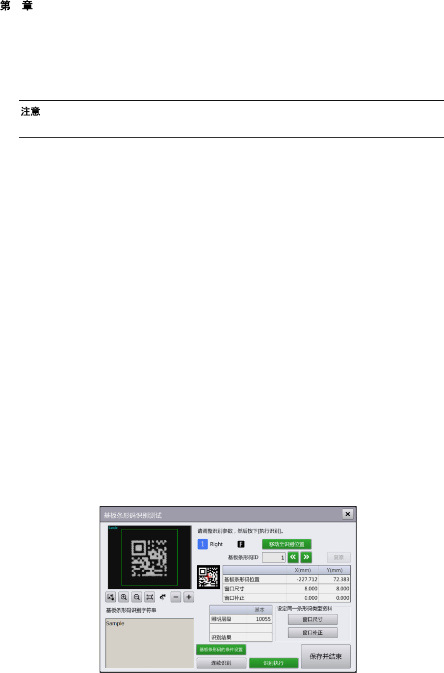 (15) 接下来,触摸[基板条形码示教] 对话框的 [识别测试] 按钮,即显示[基板条形码识别测试] 对话框。[基