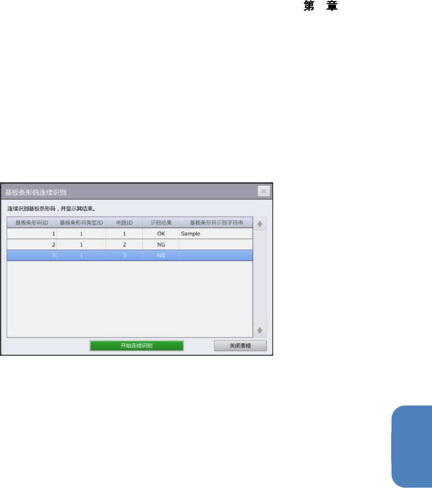 (19) 触摸[关闭表格] 按钮,返回显示 [基板条形码识别测试] 对话框。