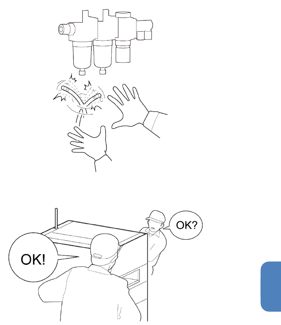 在(工厂侧)一次空气供给状态下,请勿拔下空气导管类。