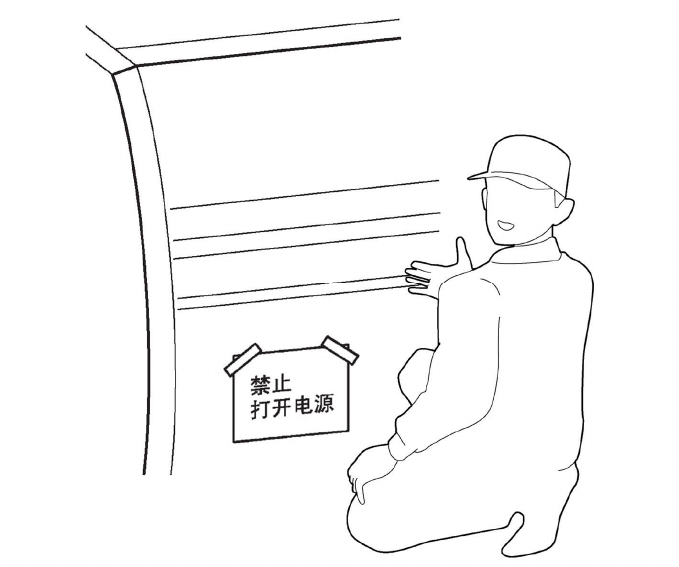 检查中在未接通电源的状态下作业时,请在电源开关前放置注意标示后,进行检查作业。