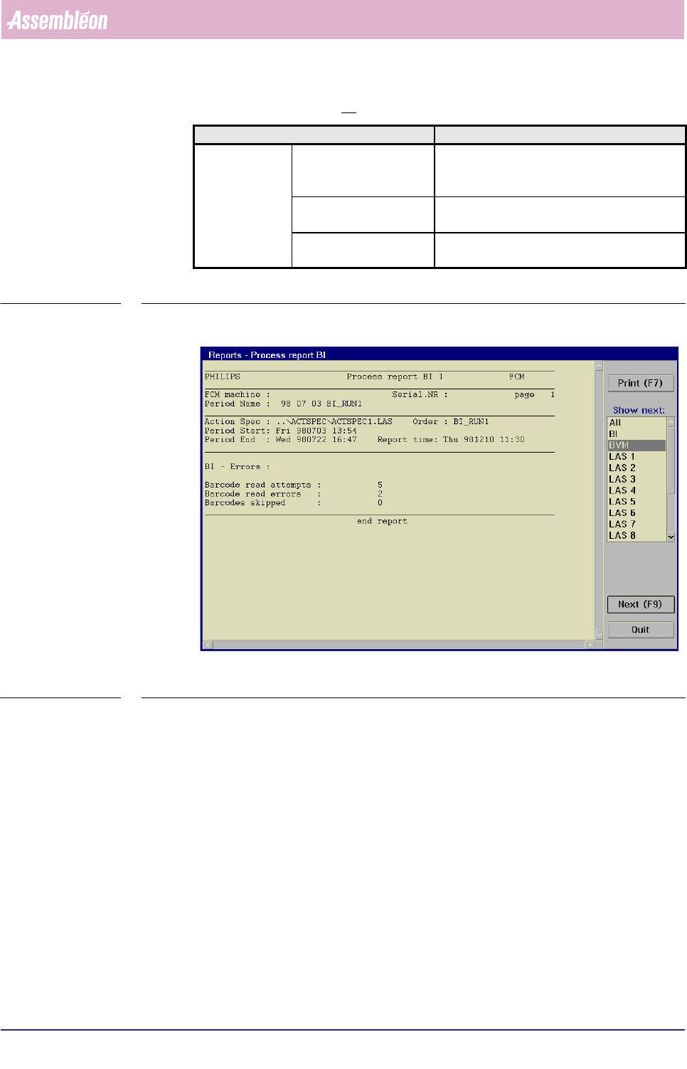 MIS User Re ference Manual 4022 5 91 96082 5-26 F CM Mult ifl ex 02.02 ▼ Contr ols The c ontr ol s on th e r ight of th e [P roc es s rep ort .. .] sc ree n h a ve t he follo w in g fu n ctions : ■ sel ect [P ri nt (F7 )…