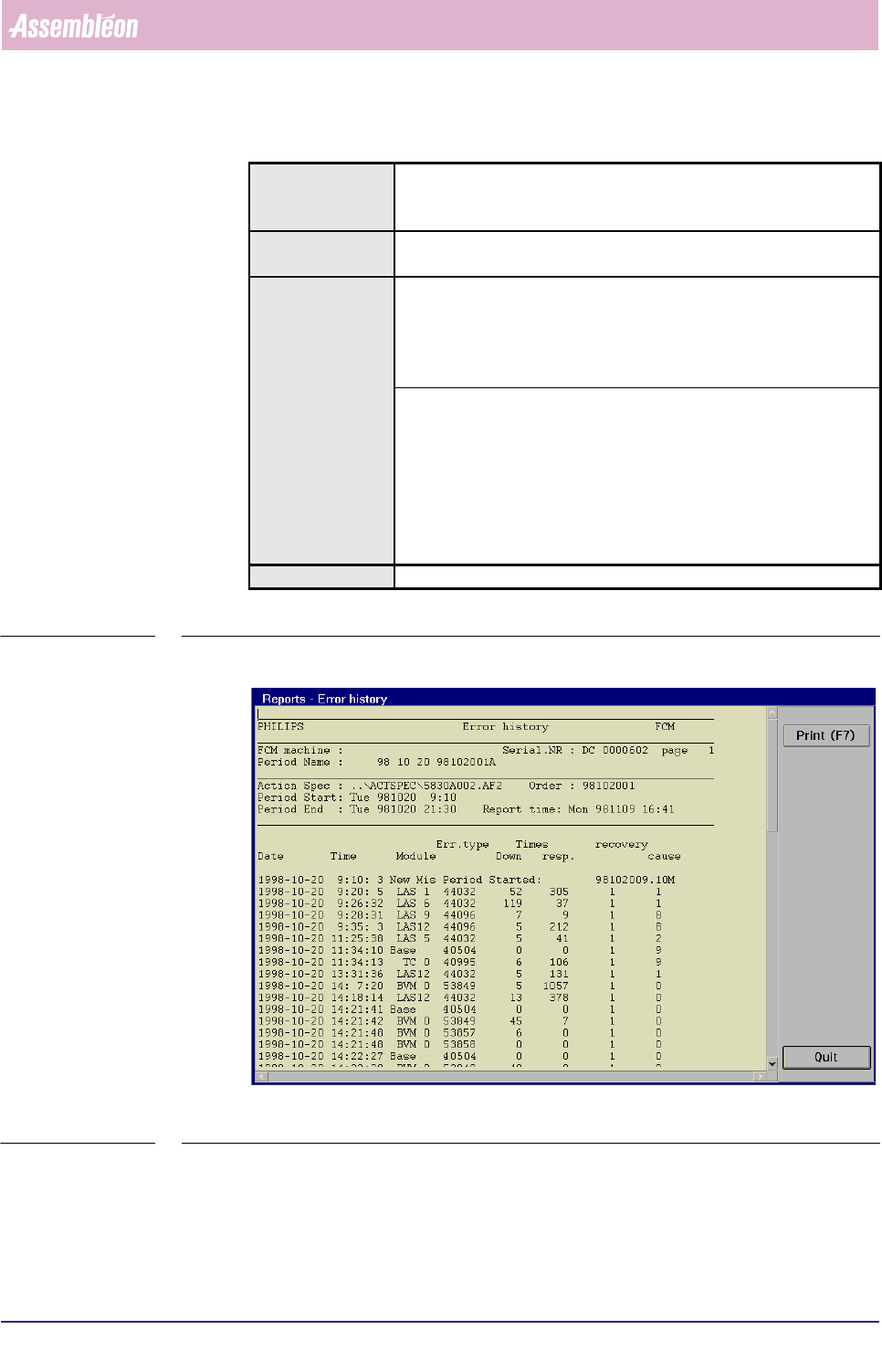 ■ history of error occurrences with following information:
