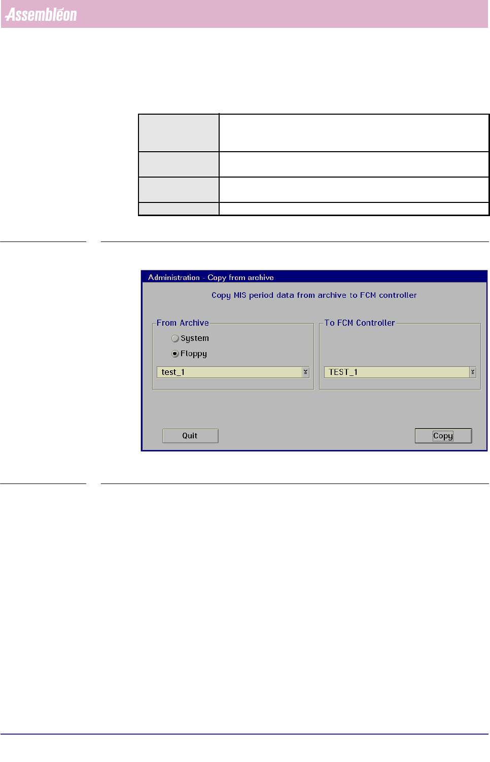 Information ■ copies MIS period data from the FCM Multiflex controller to archive