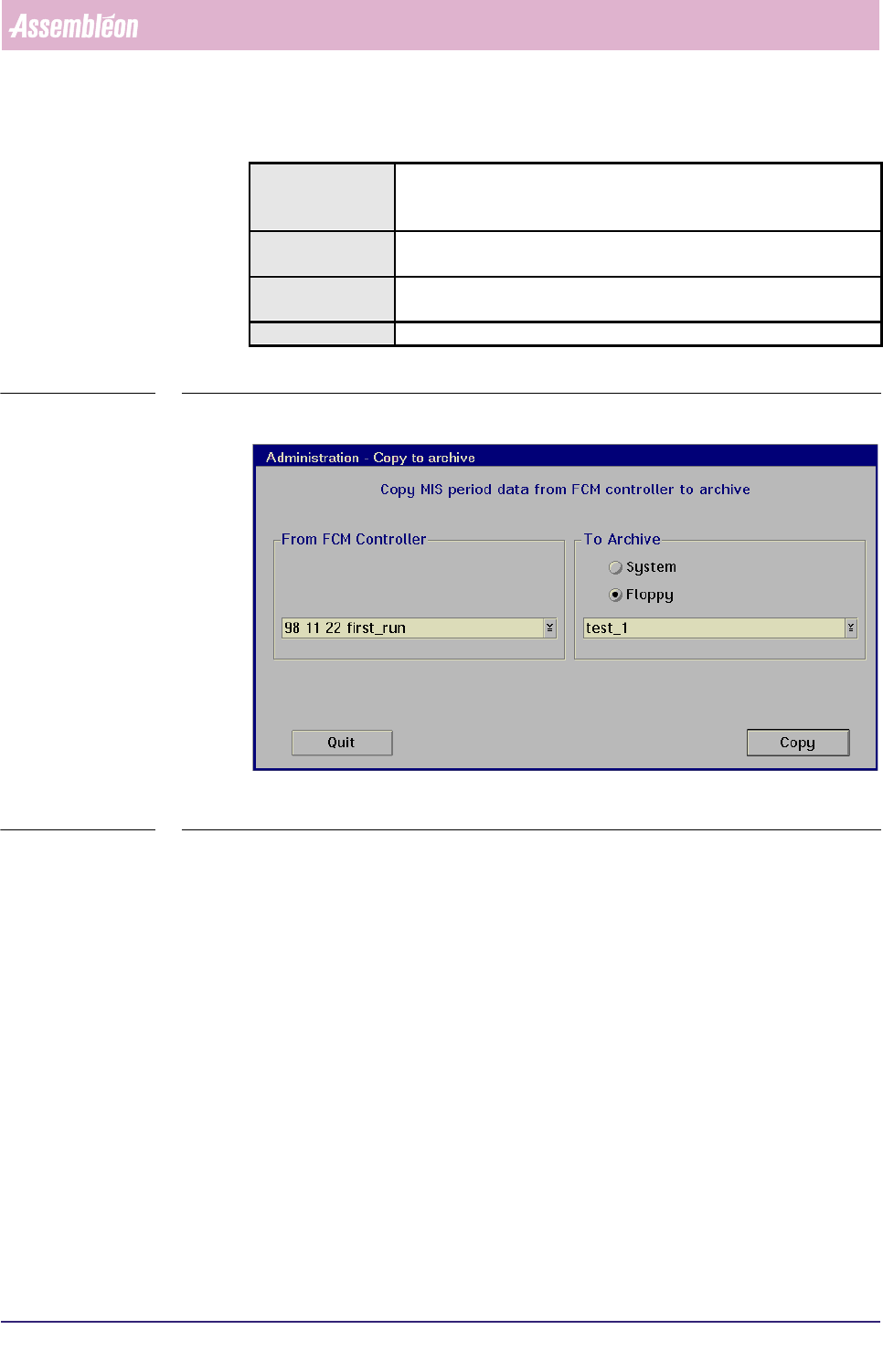 4022 591 96082 User Re ference Manual 02.02 FCM Multiflex 5-81 MIS 5.3.8.2 [A dminist rati on] > [C opy t o arc hiv e ...] T ABL E 5-40 Qui ck Refer ence fcm05 68a.tif SCREE N 5-6 0 [Copy to arc hive . . .] s creen ex…
