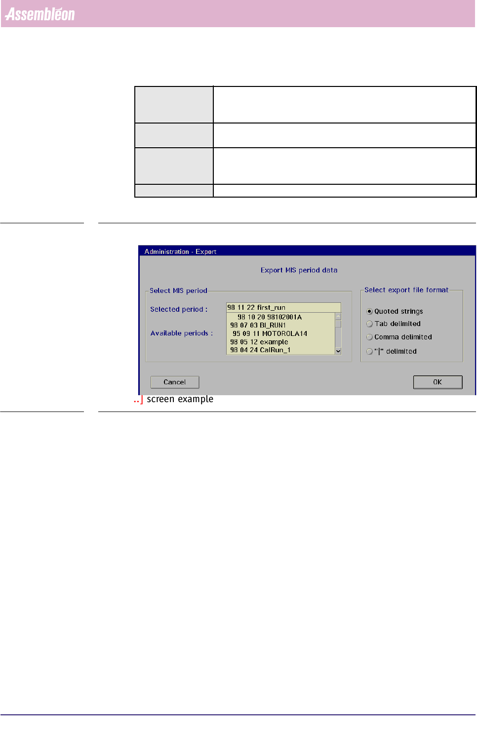Information ■ exports MIS period data from the FCM Multiflex controller to