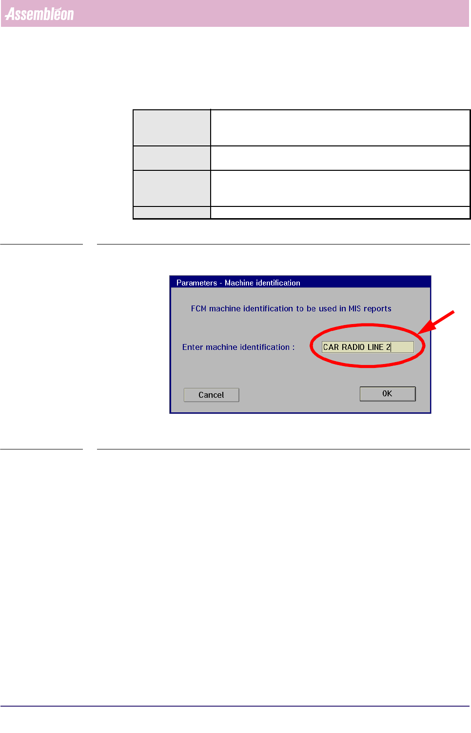 Information in this menu, the FCM Multiflex machine identification can be