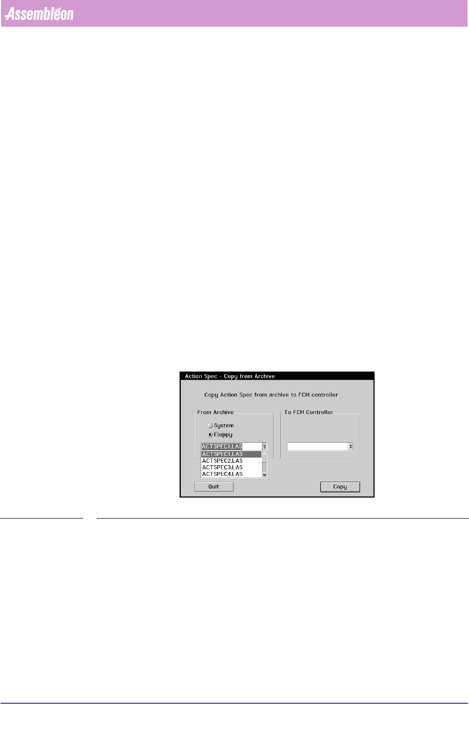 SCREEN 6-1 Copying a new Action Spec to the FCM Controller