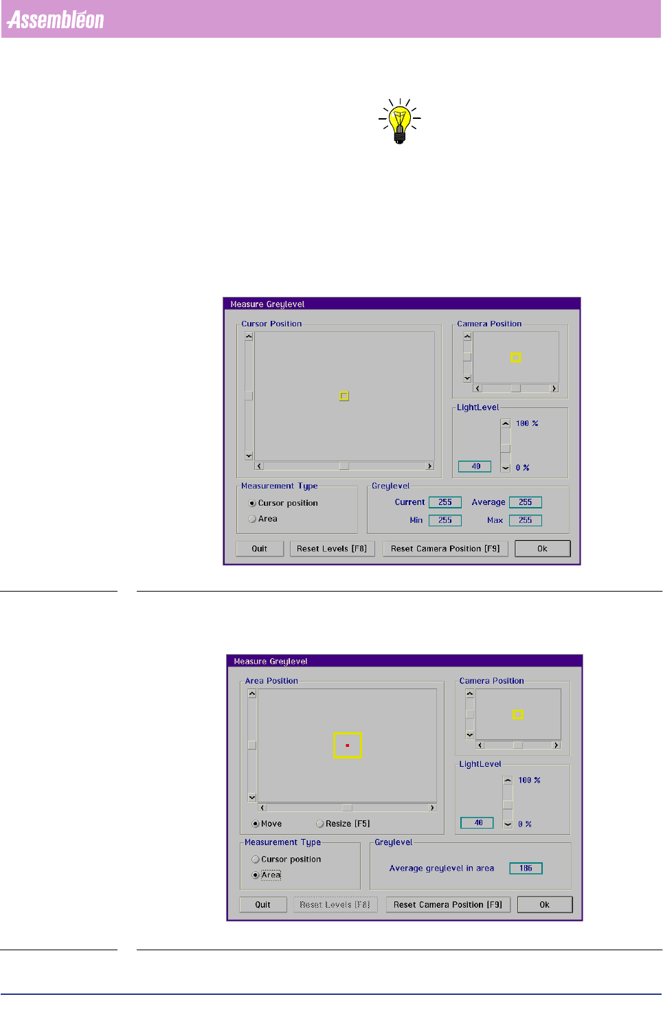 ■ Select with the tracker ball and the sliders a spot with a representative grey level