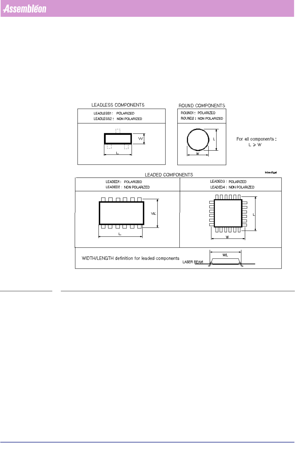 A component type is defined as “LEADED” if the laser beam shines on one or