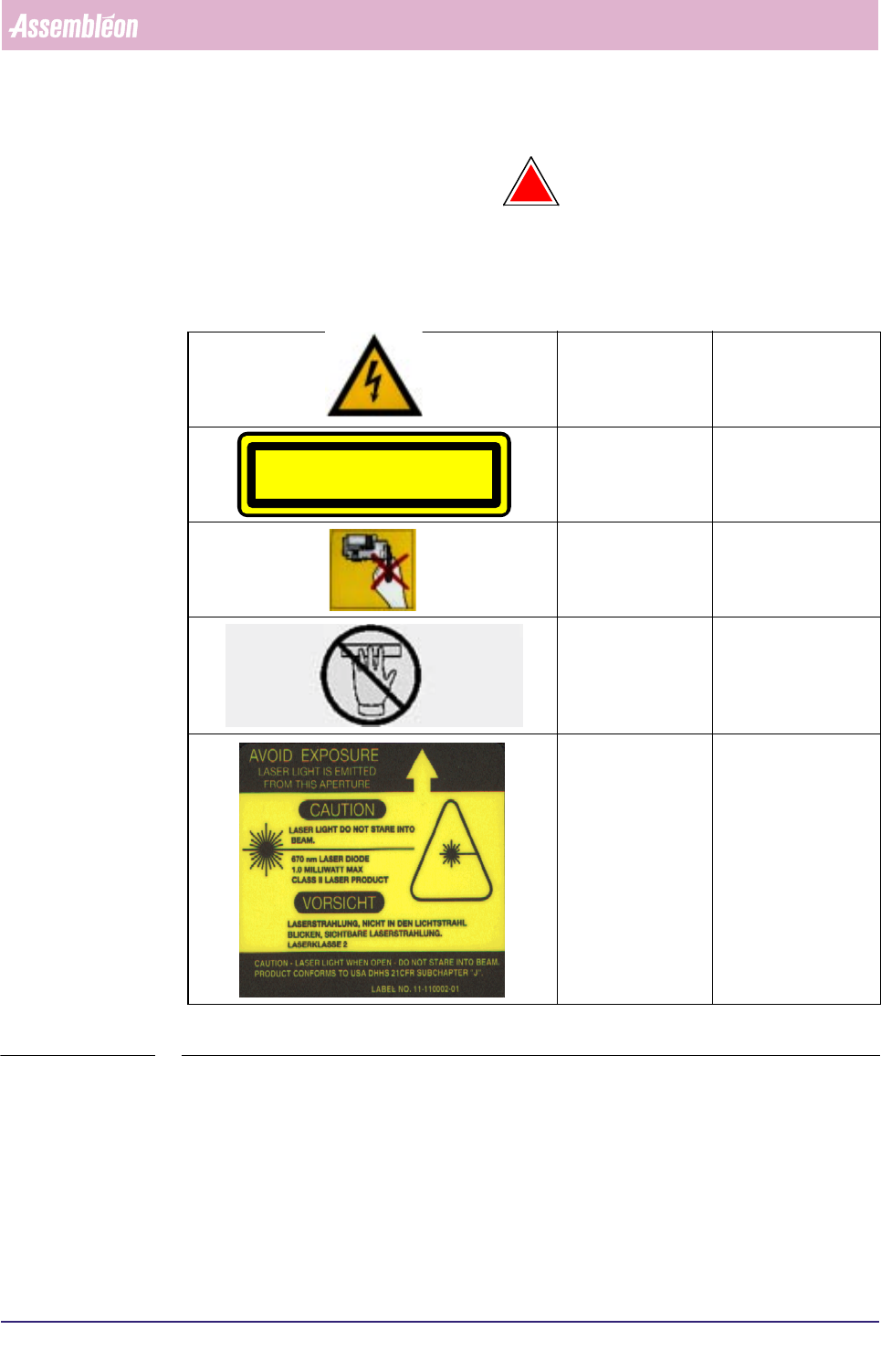 TABLE 1-1 Warning Stickers