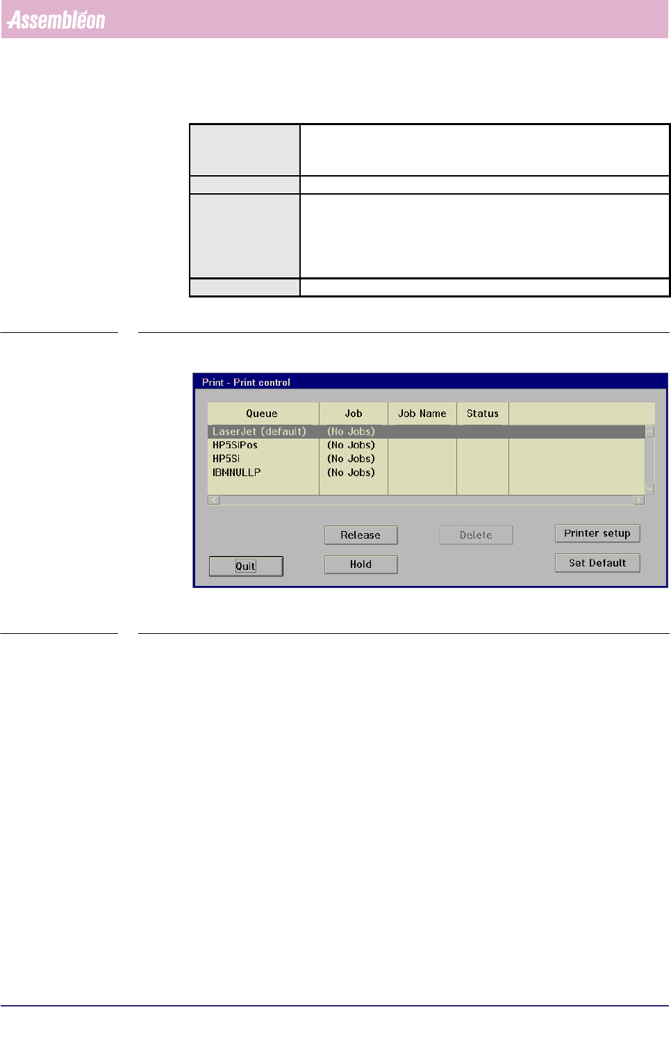 Information gives control over print jobs and printer queues: