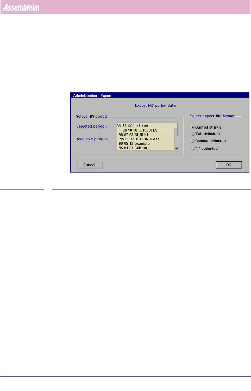 ■ select the MIS period from the [Available periods] window in the [Export...]