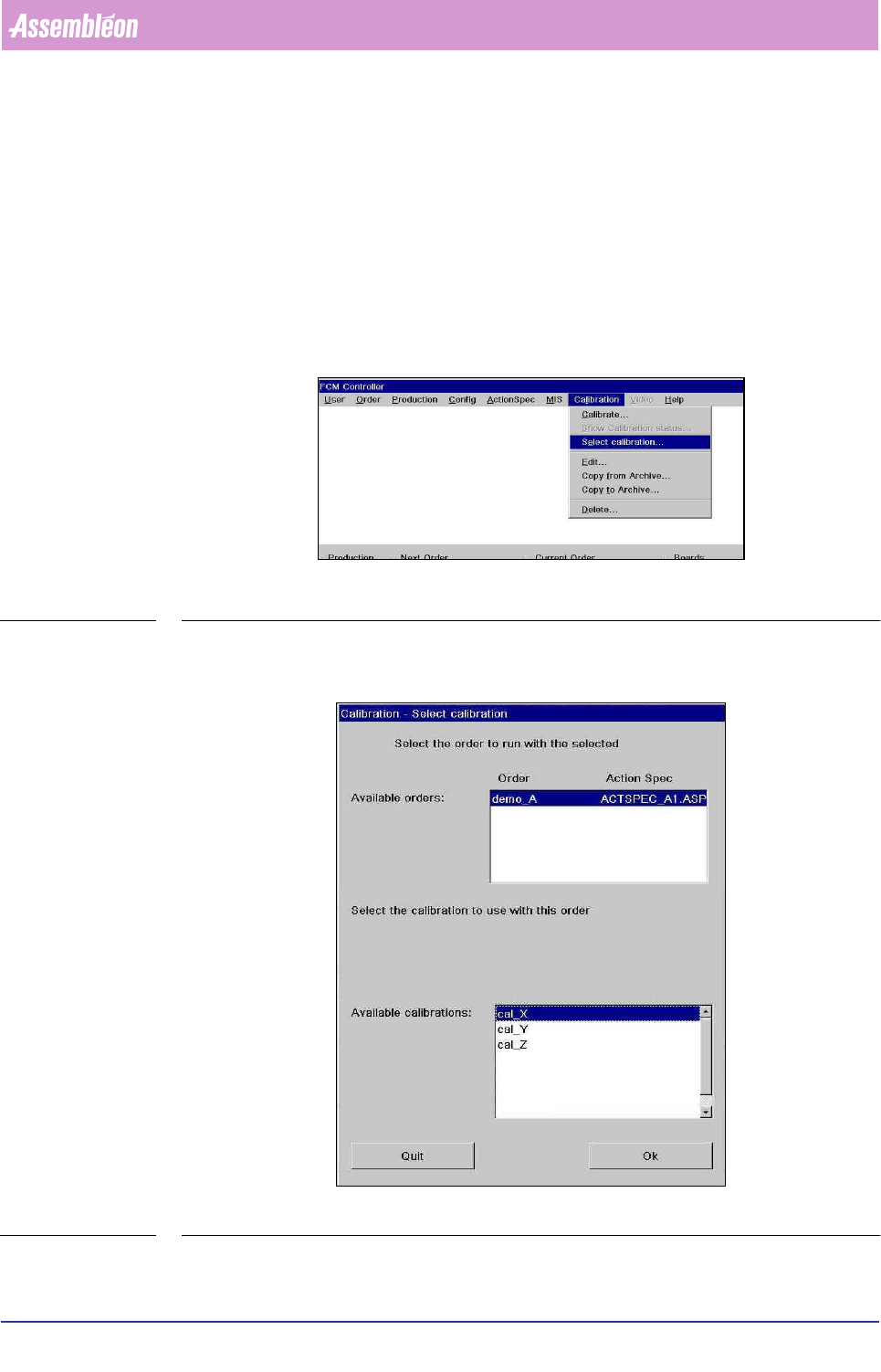 In this dialog a suitable calibration set can be chosen for the order to be used.