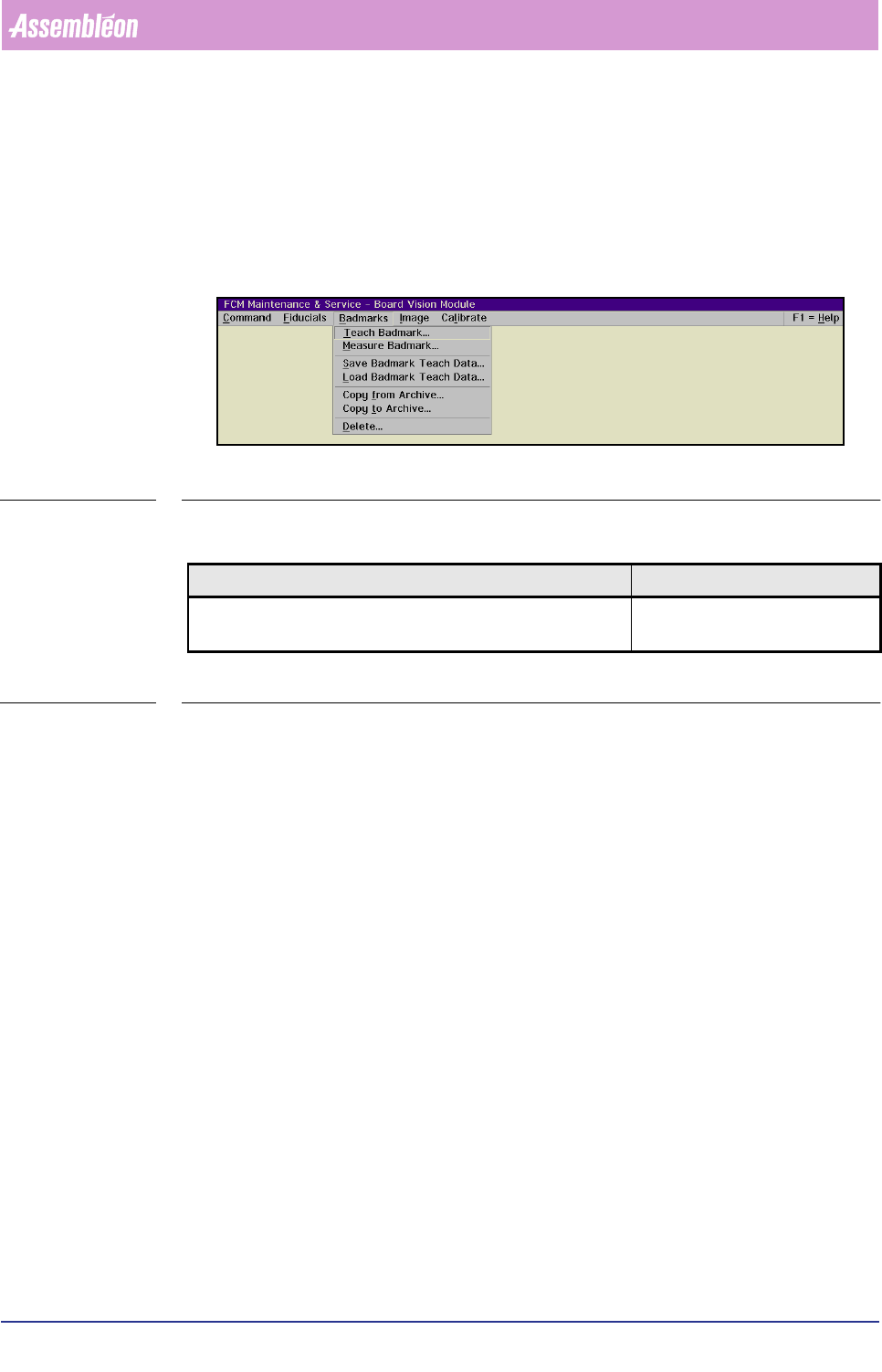 Pr oduc t Ch ang e Ov er User Re f eren ce Manu al 4022 591 960 82 6-30 FCM M ult ifle x 02.02 NOTE: Choose a board with badmarks (or fiducials assigned as such) in a g ood condition (no pollu tion, no damages ) and whic…