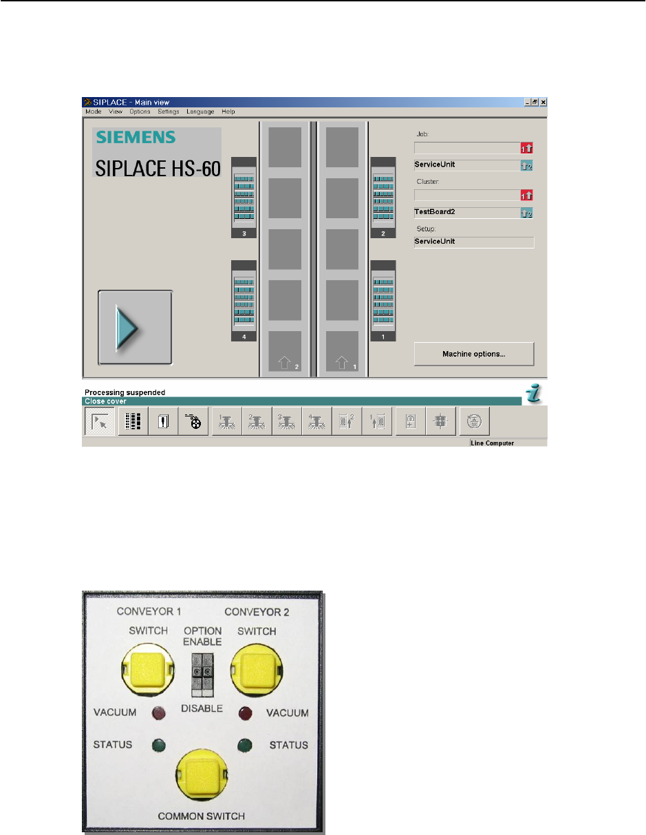 → Turn ON machine power and you could see the SIPLACE main page on screen. Press