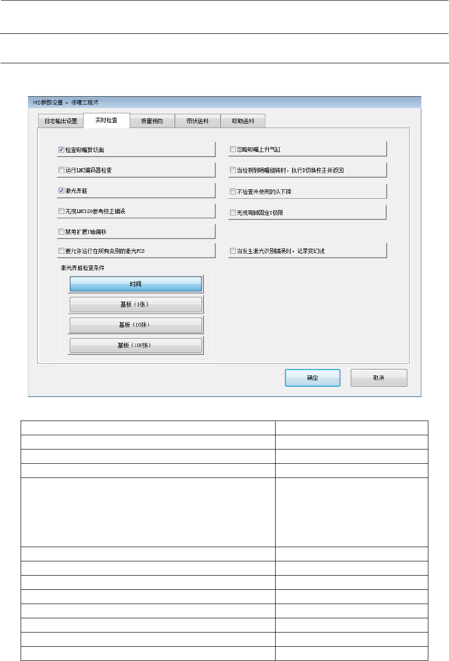 激光弄脏检查条件