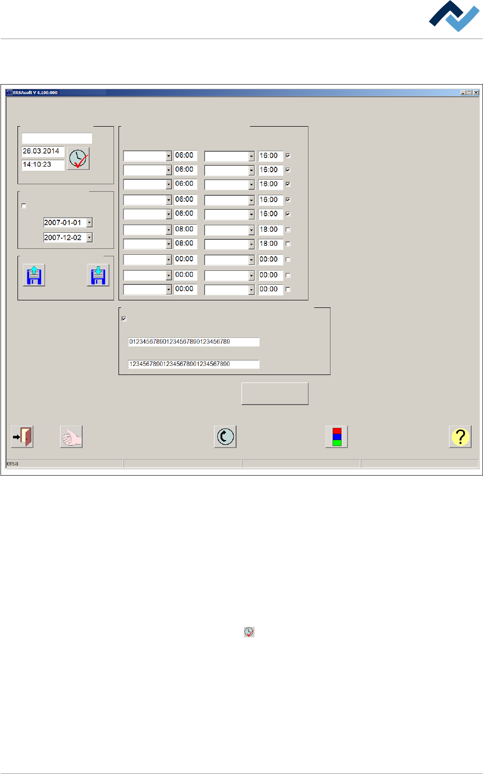Dopo un corretto inserimento di [User name] e [Password:] appare la finestra di dialogo di input [Weekly timer]: Weekly timer Production times Settings Current PLC time Shut down period Shut down period active From: To: …