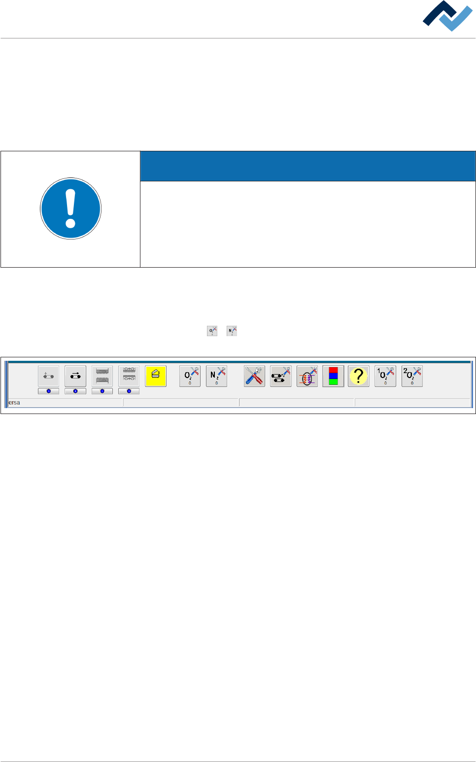La finestra di dialogo di input [N2/O2] Nella finestra di dialogo di input [N2/O2] è possibile monitorare lo stato dell'ali- mentazione dell'azoto e della misurazione dell'ossigeno residuo. Si possono inse…