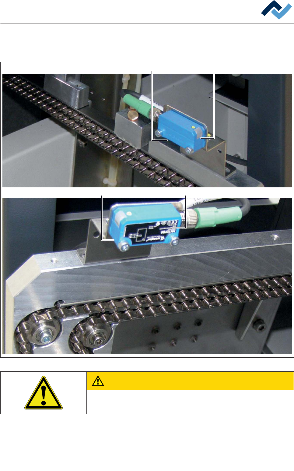 I sensori si trovano sulla guida fissa del convogliatore, all'ingresso e all'uscita della