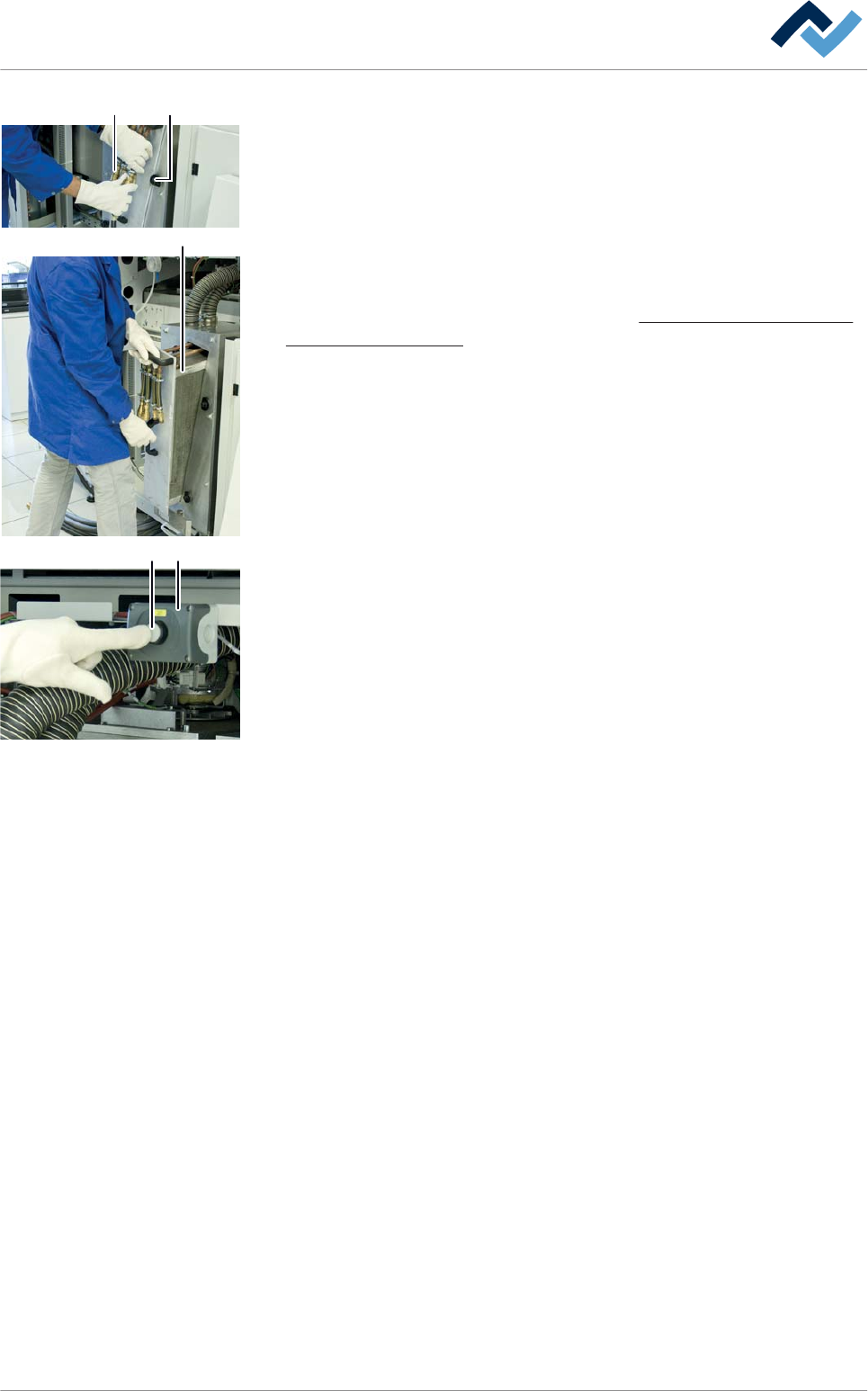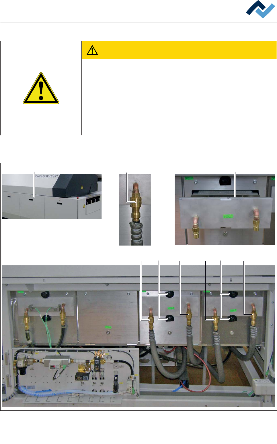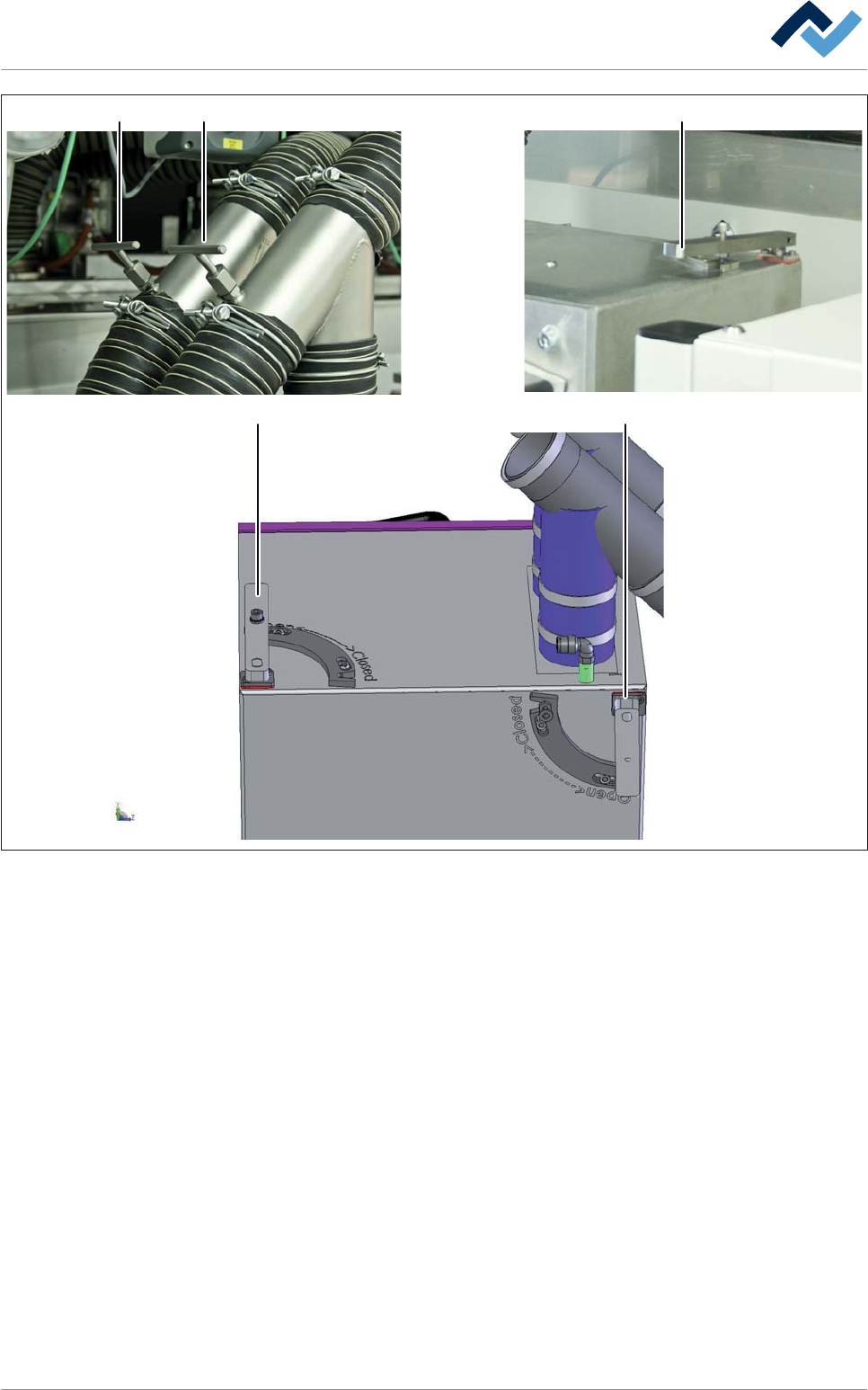 5 5 6 6 6 Fig. 155: Utilizzo dei rubinetti di intercettazione. L'immagine in basso raffigura il lato posteriore del box di purificazione del gas di processo. 15.Ruotare i due rubinetti (5) nella direzione [Funzionam…
