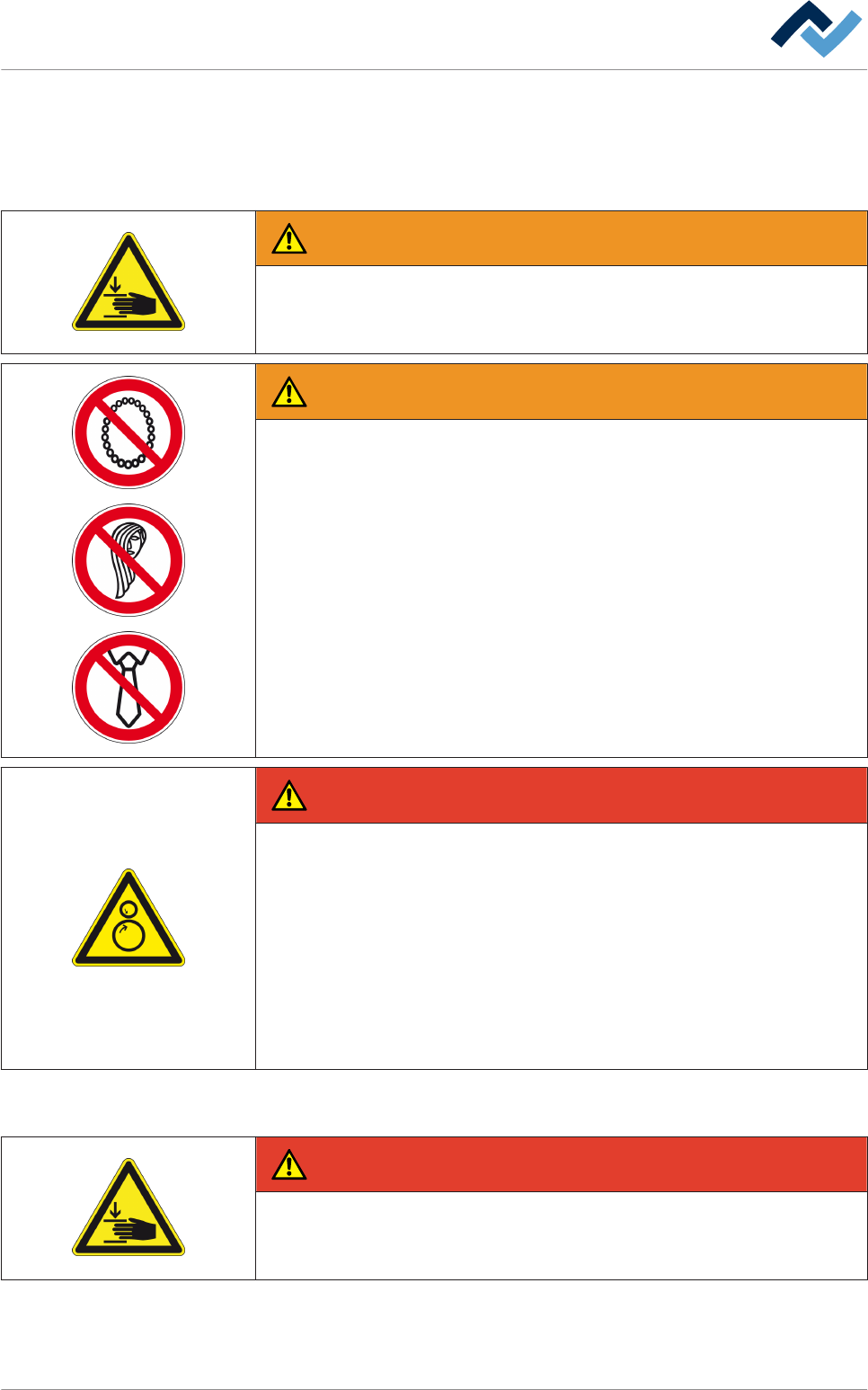 Pericolo di lesioni dovuto al trascinamento dei guanti!