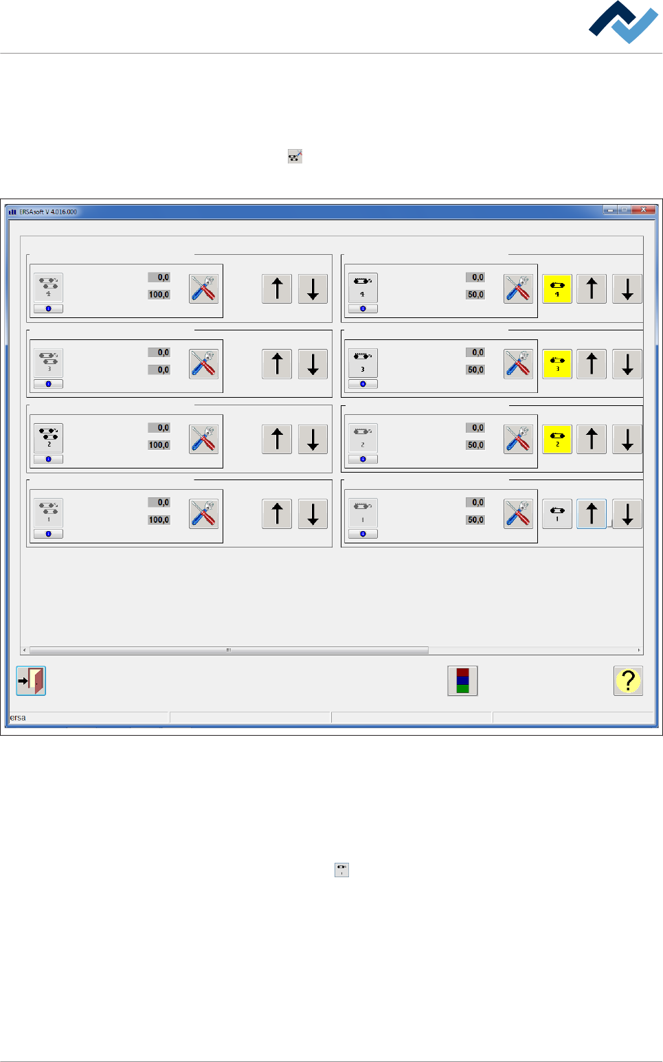 Controllo del supporto centrale ü Per aprire la finestra di dialogo di input [Conveyor width adjustment]: 1. Nella barra degli strumenti inferiore della finestra di dialogo di avvio fare clic sul pulsante . ð Si apre la …