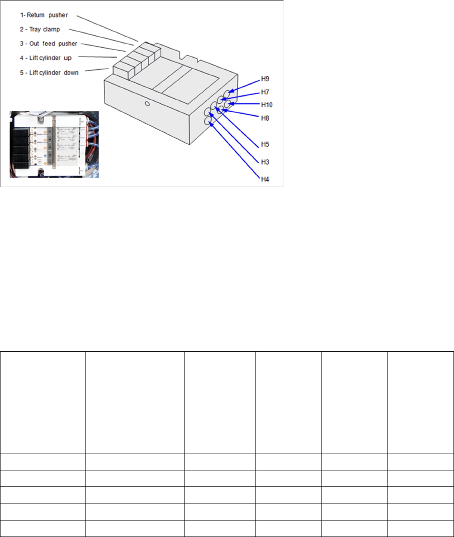 The feeder includes a bank of at least fi ve solenoids that control the pneumatic functions (see figure "