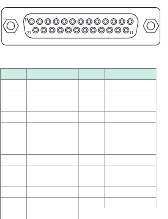 Connector used: 25 pins, female, locking-block screws #4-40