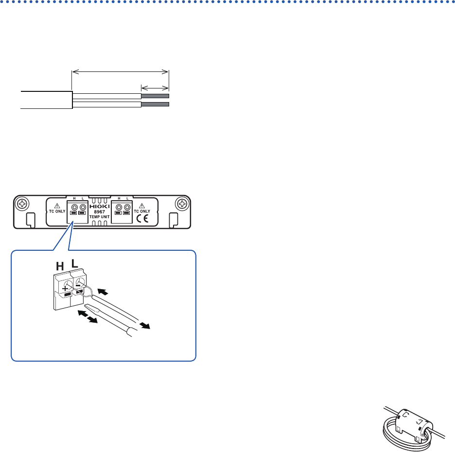 Strip the insulation of the thermocouple wires as shown on the