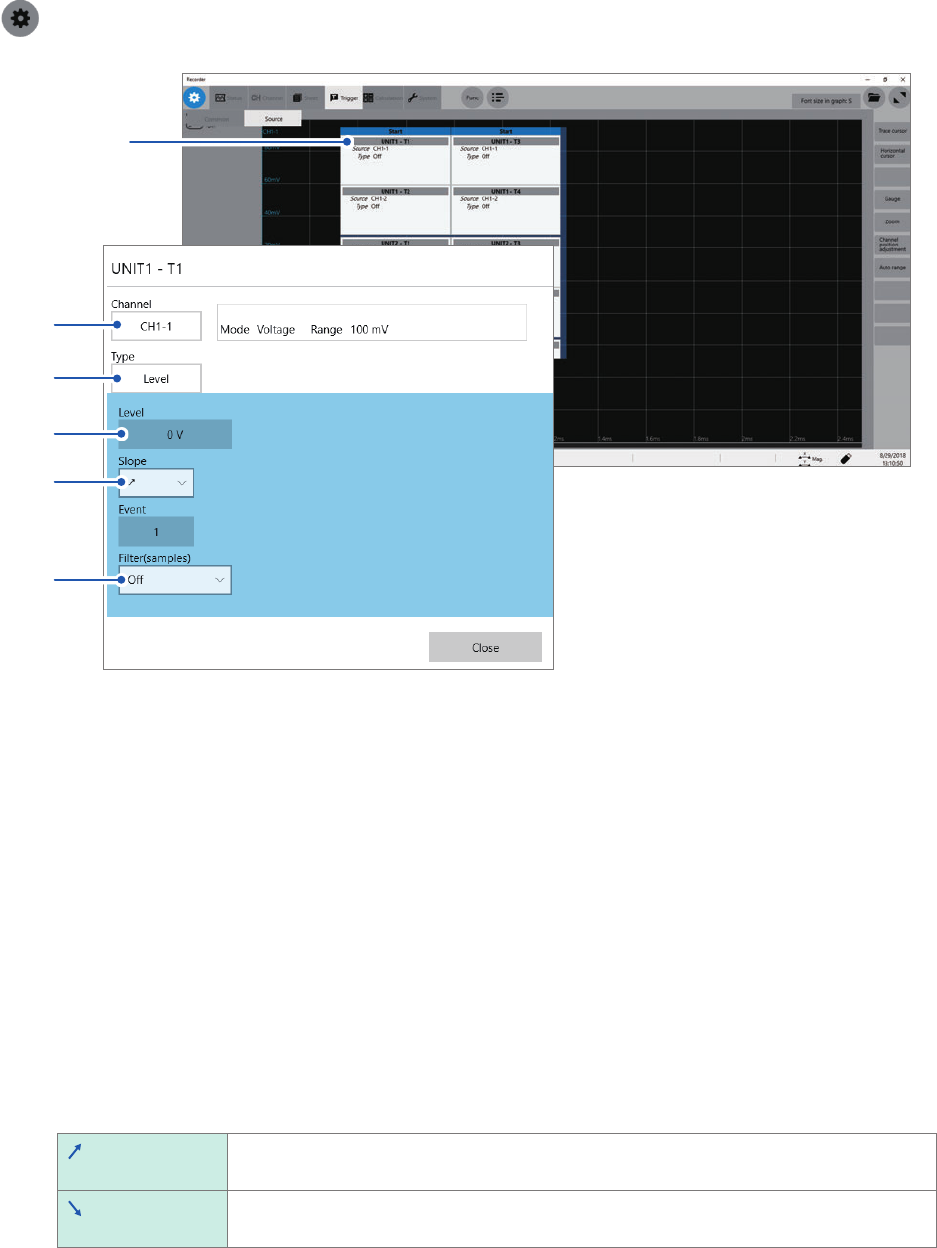 Click the [Slope] box, and then choose a signal direction that allows the level trigger