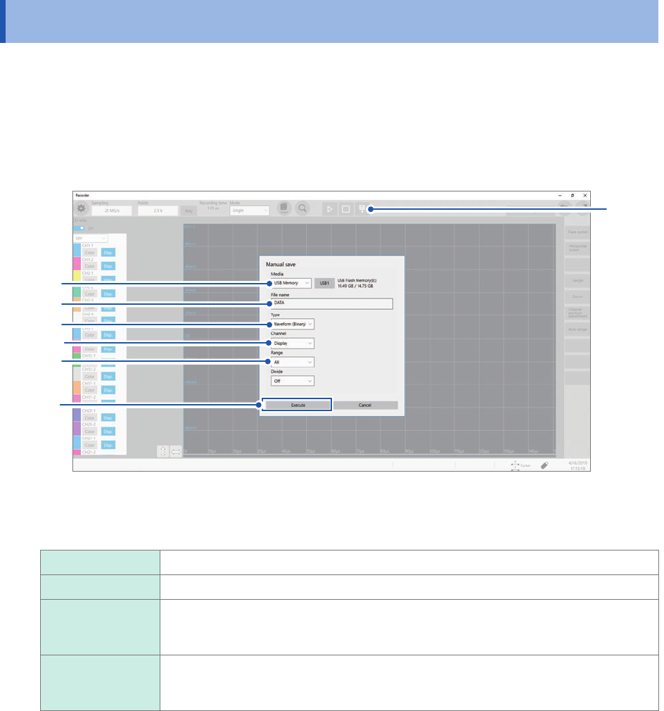 75 Starting/Stopping Measurement 3.5 Starting/Stopping Measurement Starting a measurement When you click the start icon, the instrument starts a measurement. W aveform data shown on the screen is cleared once the measure…