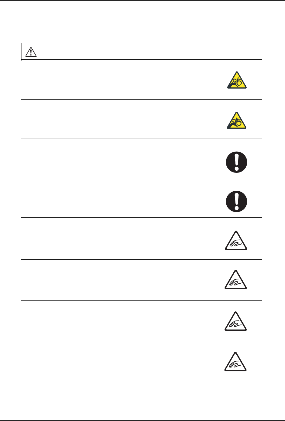 ·手指有可能与正在动作中的工作头接触,被卷入机器而受伤。